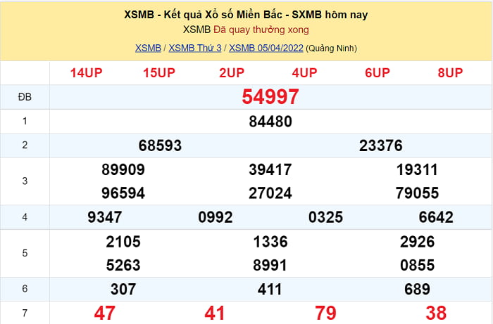 Kết quả XSMB ngày 5/4/2022